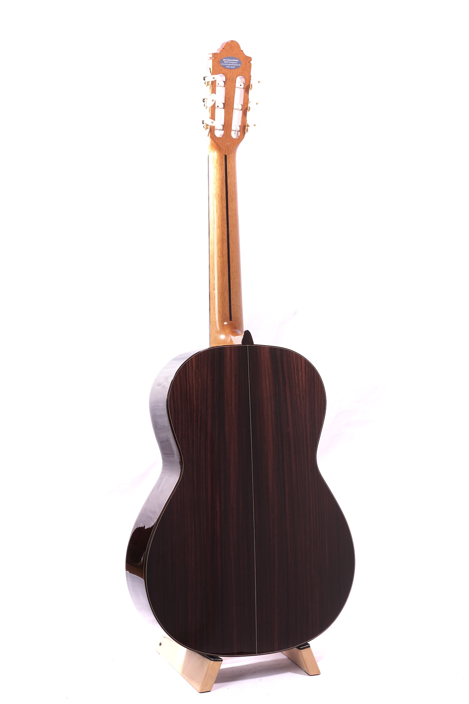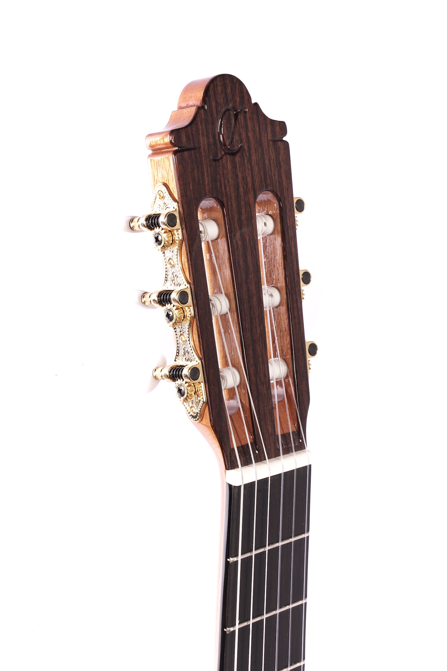 Die Primera Negra von Camps ist eine hochwertige Flamencogitarre aus spanischer Herstellung. Sie wurde wie bei einer "blanca" Flamencogitarre sehr leicht gebaut und die Zargenhöhe ein wenig reduziert. Dadurch erhält sie den typisch knackigen, schnell ansprechenden Flamenco-Sound. Anstatt einem Korpus aus Zypressenholz bestizt dieses Modell massiven indischen Palisander für Boden und Zargen. Dies verleiht ihr mehr Fülle und einen länger anhaltenden Ton, perfekt für Solospiel.