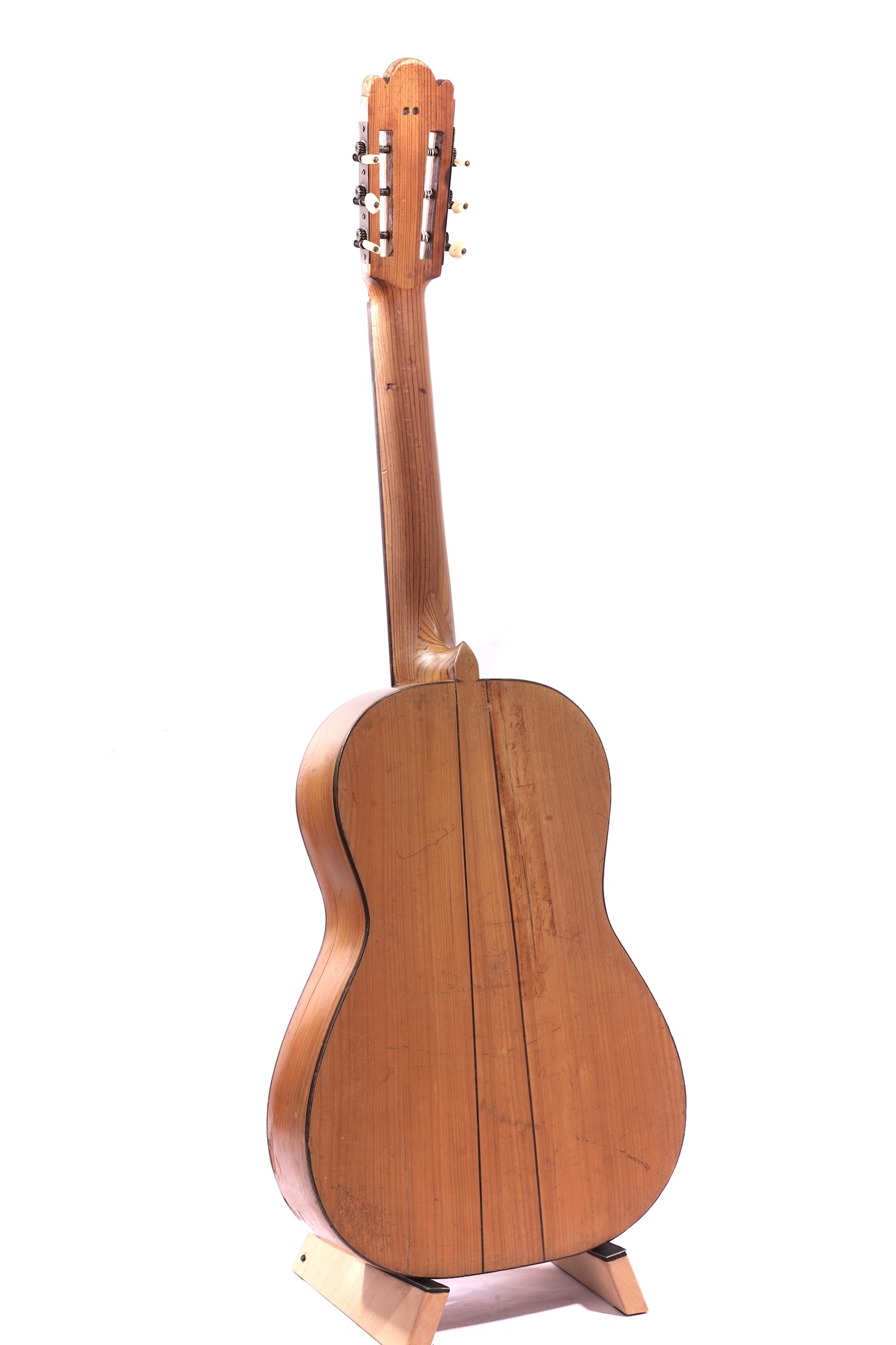 130 Jahre gealtertes Holz, federleicht und klanglich durchaus mit den frühen Torres Gitarren vergleichbar. Das Instrument ist original erhalten und voll spielfähig. Eine absolute Rarität aus den Anfängen des Gitarrenbaus in Granada.