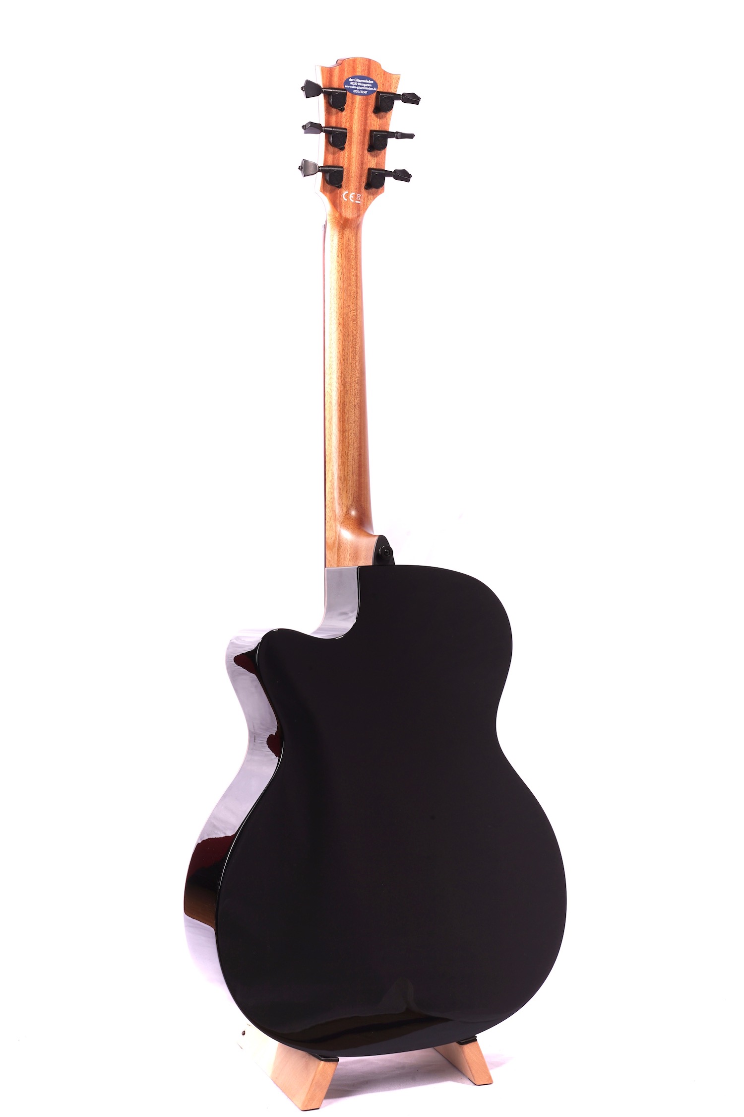 Die Lag T118 ACE blk ist eine sehr schön verarbeitete Westerngitarre in der Auditorium Bauform. Sie besitzt einen Cutaway für das Spielen in hohen Lagen und kann durch das eingebaute Tonabnehmersystem mit Preamp in der Zarge auch verstärkt eingesetzt werden. Die braunen Randeinlagen stehen schön im Kontrast zu der edlen, schwarzen Hochglanzlackierung.